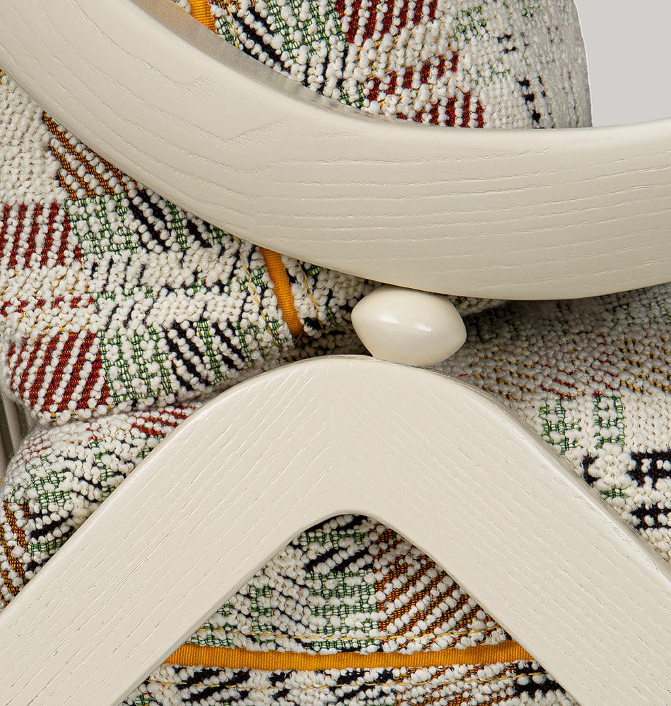 The taylor armchair is characterized by the sinuous and elegant shapes of its hand-carved solid wood frame and its soft cushions. This combination of shapes and materials is available in a variety of finishes and blends: canaletto walnut or ash (lacquered or natural) for the wooden frame, fabrics or leather for the cushions’ cover. The result is an armchair with a solidly sculpted structure and nice craftsmanship that fully express borzalino’s values, such as elegance, refined design, and comfort.