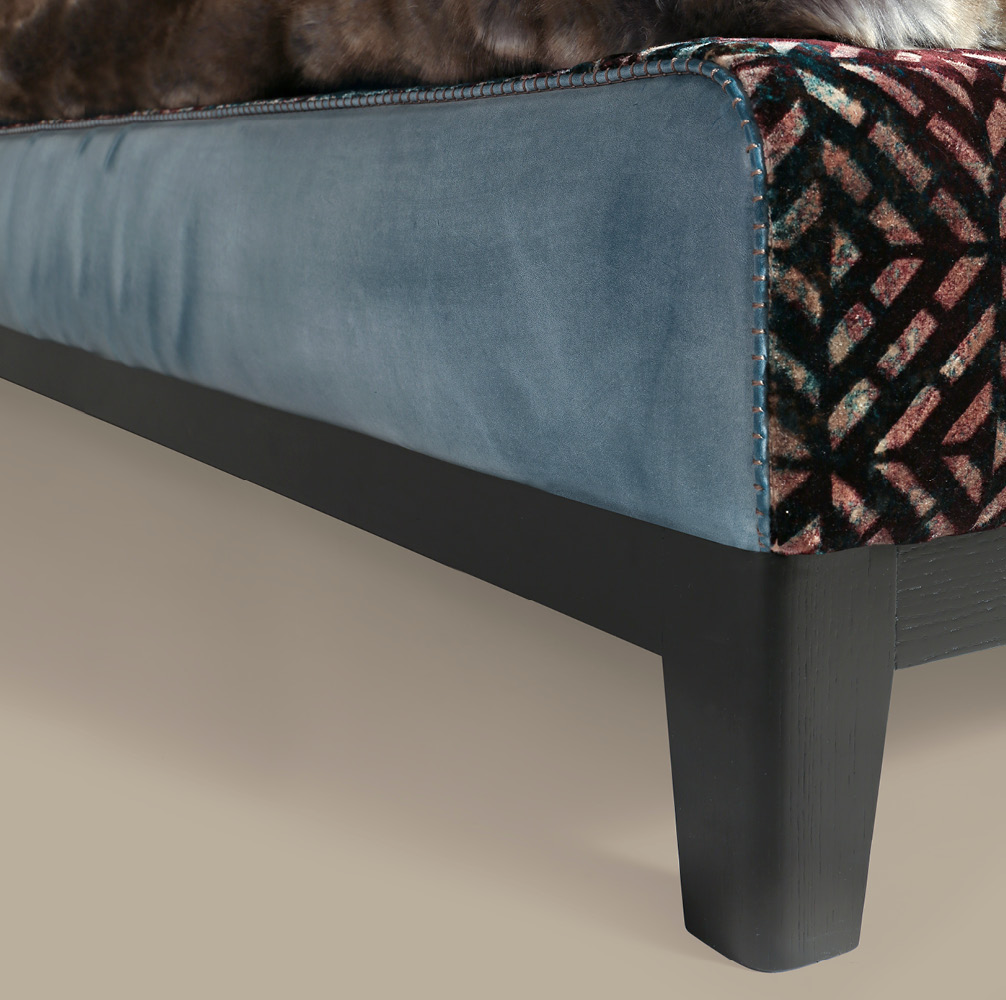 le cadre ainsi que le tête de lit sont enrichi d’un bordure conçue par le Studio style BORZALINO appelé “STEP”.