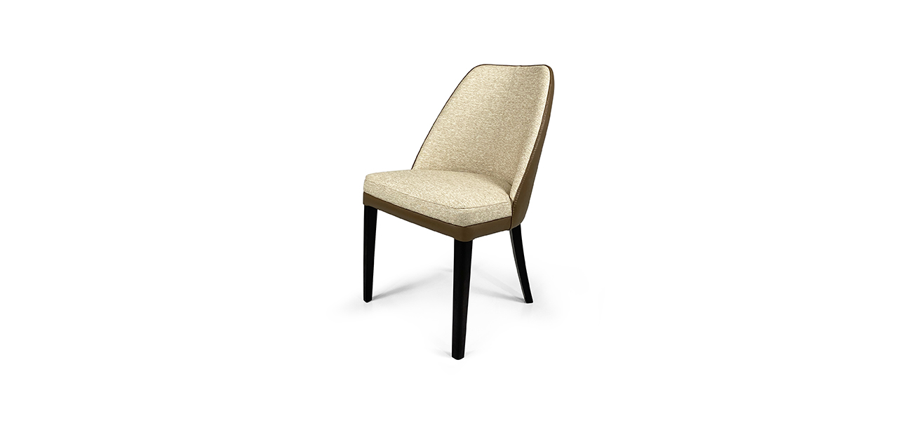 High and enveloping backrest for this chair that supports the back perfectly. Its modeling lends itself to various combinations of colours and materials.