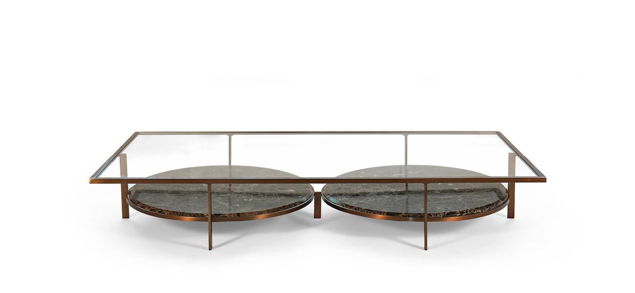 Transparent upper glass top in glass and with chamfer lower marble top.
